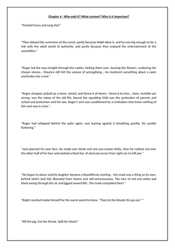 Lord Of The Flies Chapter 4 Key Quotations Teaching Resources